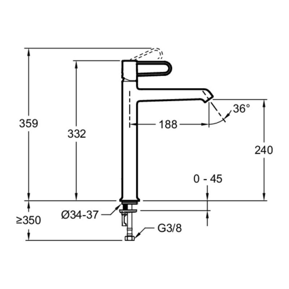 - Струя воды направлена к центру раковины для комфортного ежедневного использования