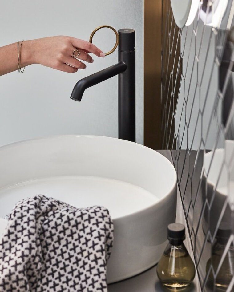 Кран, созданный как ювелирное изделие: эффектная ручка размера XXL. Идеально сочетающиеся друг с другом - смесители и мебель. Модный угловой излив, который обеспечивает хорошую проекцию воды. Высокий, идеален для накладных раковин.