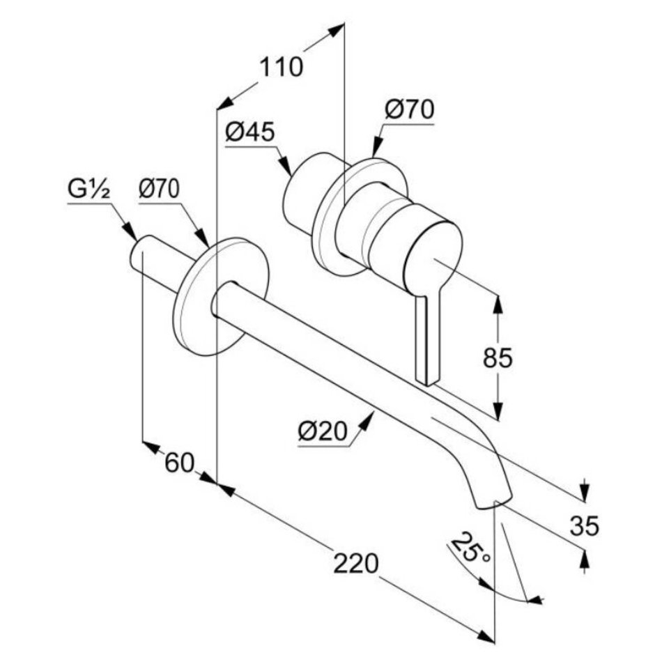 - Длина излива (расстояние от корпуса смесителя до конца излива): 22 см