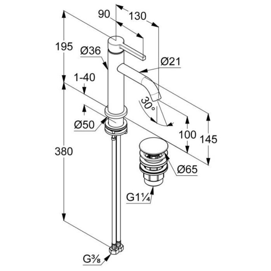 - В комплекте со смесителем поставляется донный клапан (входит в стоимость)