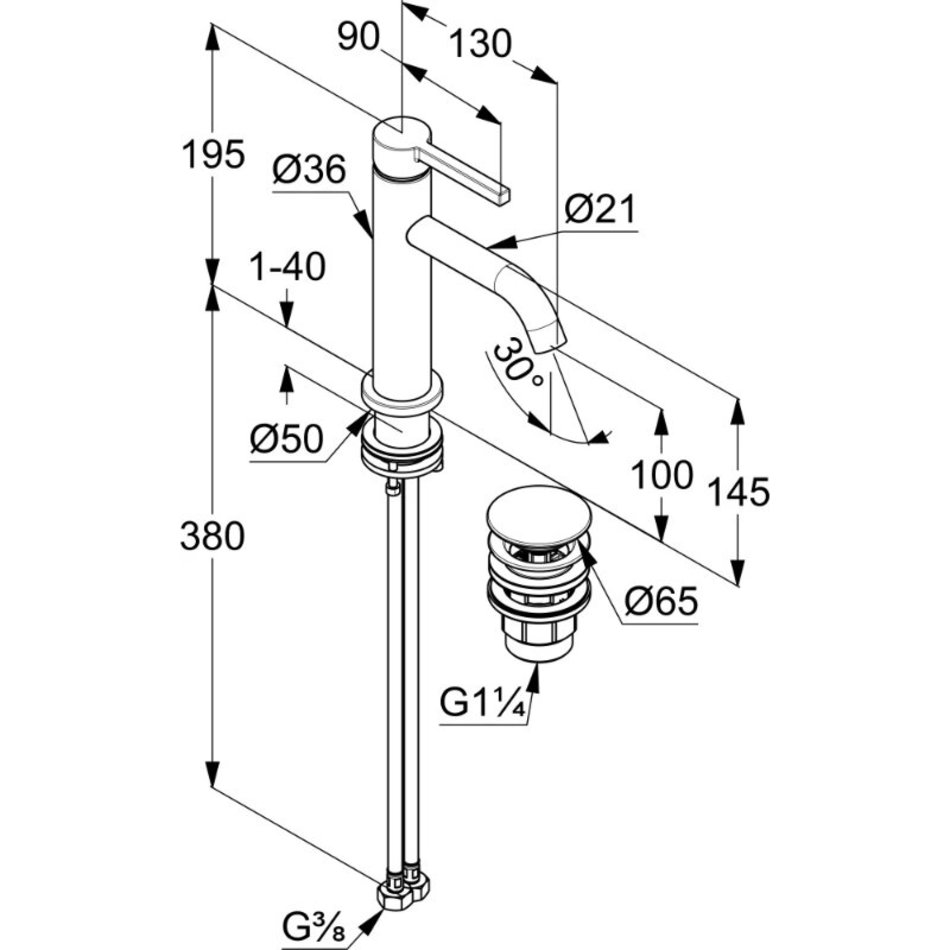 - В комплекте со смесителем поставляется донный клапан (входит в стоимость)