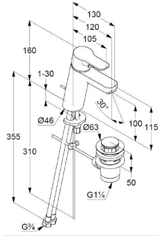 - гибкая подводка G 3/8