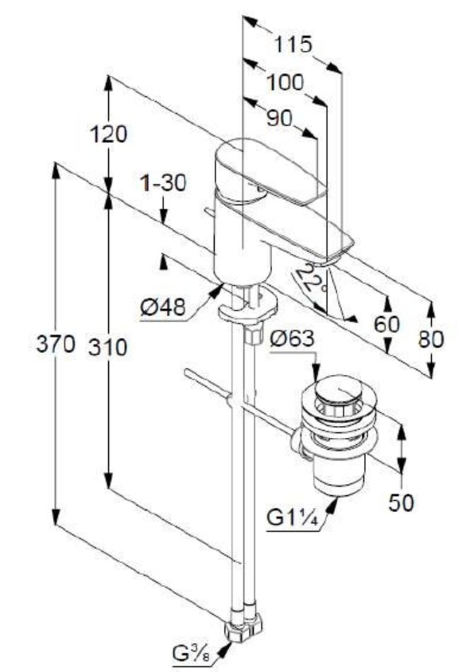 - metal pop-up донный клапан G 1 1/4