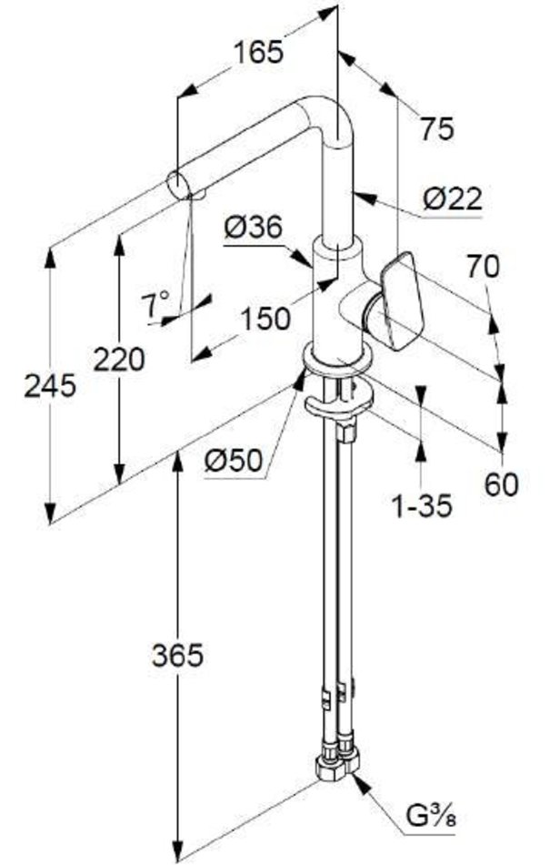 - гибкая подводка G 3/8