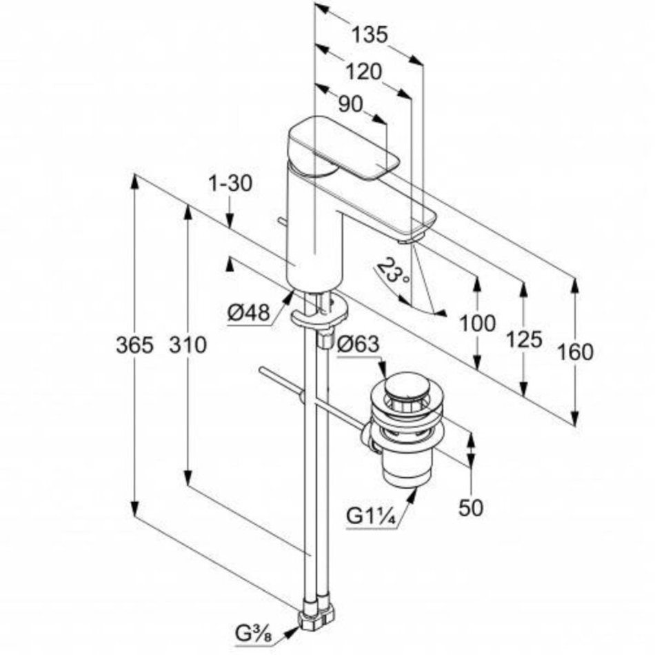Смеситель для раковины Kludi Pure&Style, с донным клапаном, цвет черный матовый, 402903975