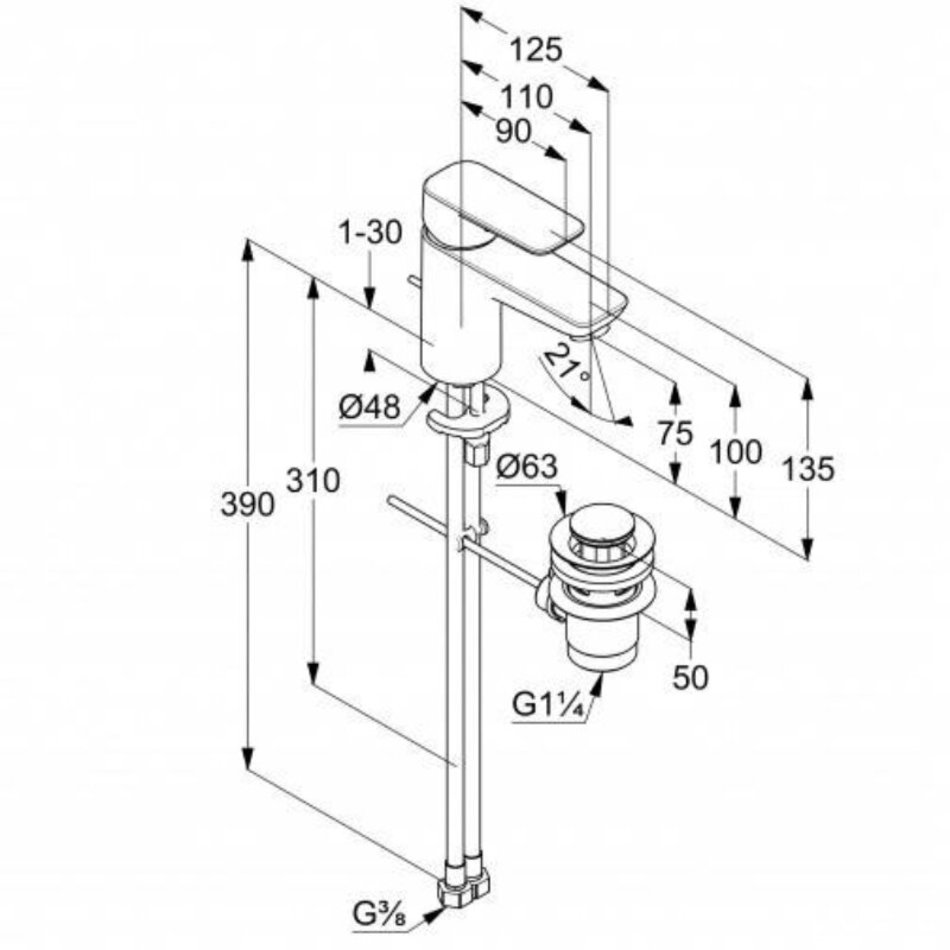 Смеситель для раковины Kludi Pure&Style 403823975, с донным клапаном, цвет черный матовый