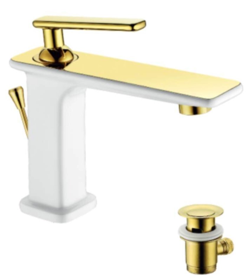 Смеситель для раковины Lemark Mista LM6406WG монолитный, белый/золото