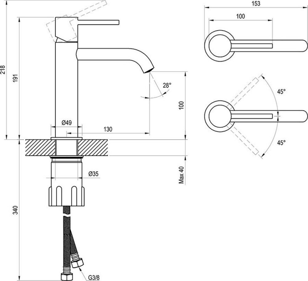 - Соединительные шланги: гибкий 450 мм, диаметр G3/8