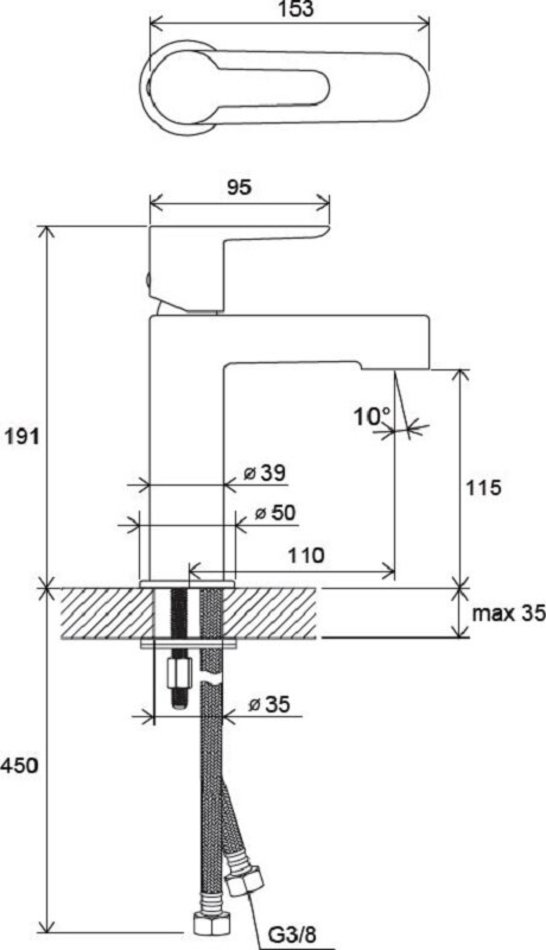 - Соединительные шланги: гибкие 400 мм, диаметр G3 / 8