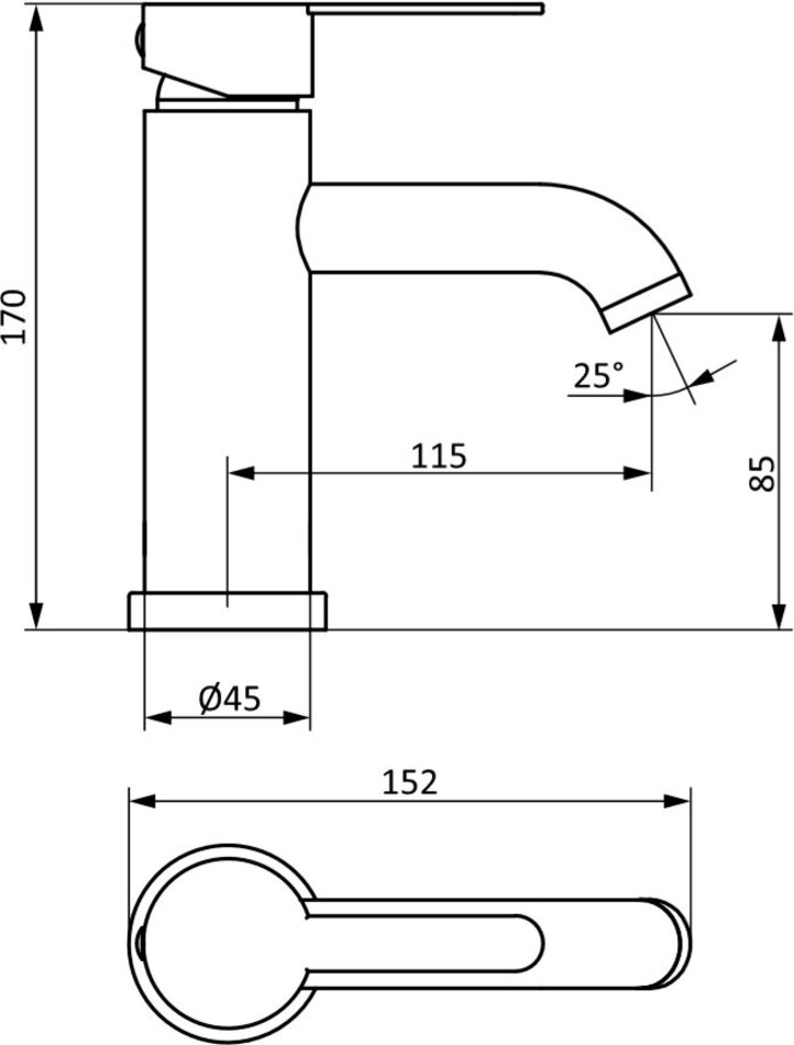 - Длина излива (расстояние от корпуса смесителя до конца излива): 11.5 см