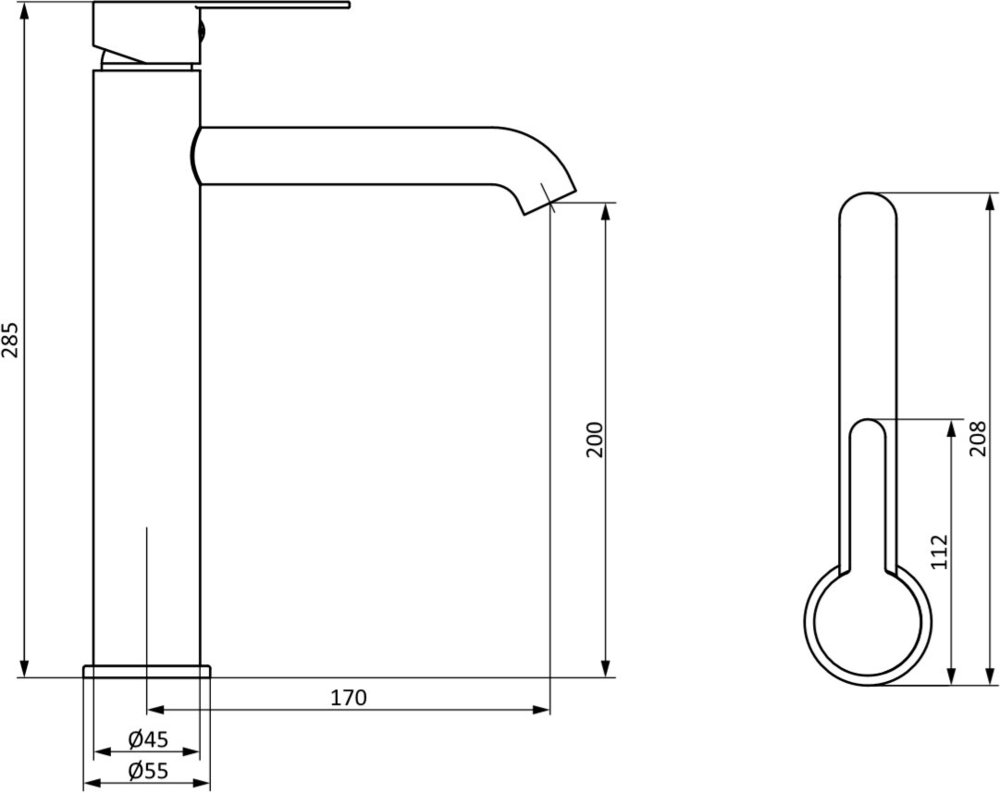 - Длина излива (расстояние от корпуса смесителя до конца излива): 17 см