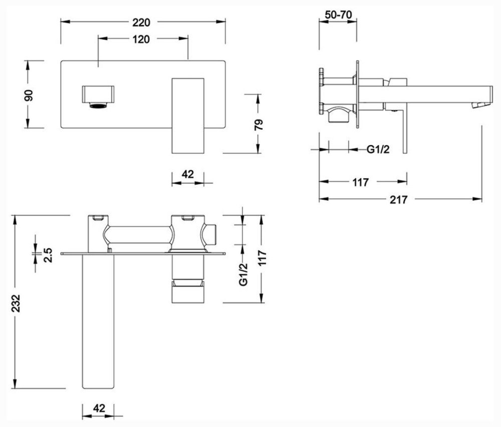 - Смеситель для раковины, скрытого монтажа