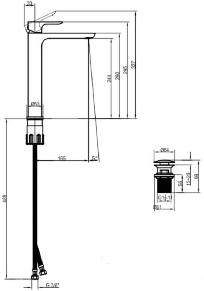 Смеситель для раковины Villeroy&Boch O.novo TVW10410511061 с донным клапаном, высокий