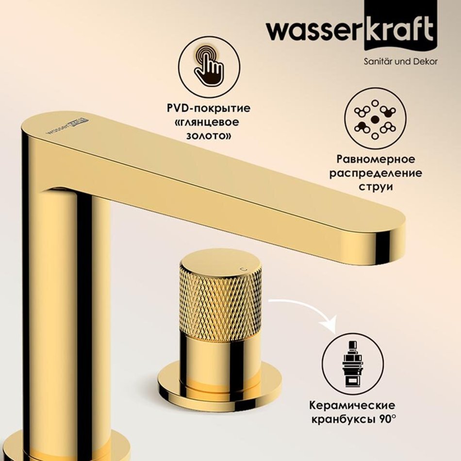 Смеситель для раковины WasserKRAFT Ems, золото глянцевое, 7635