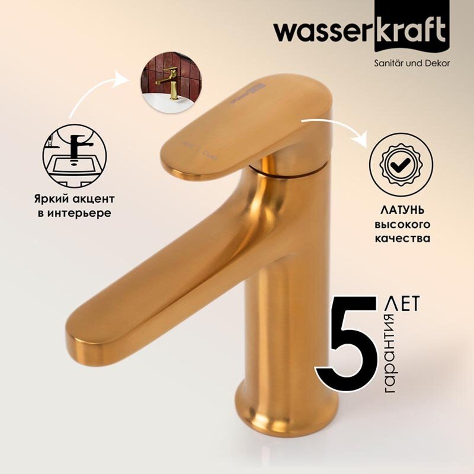 Смеситель для раковины WasserKRAFT Havel, золото матовое, 3603