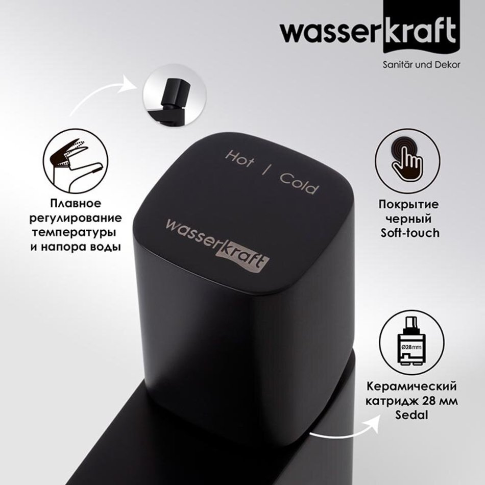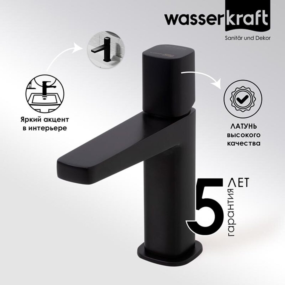 Смеситель для раковины WasserKRAFT Nuthe, черный матовый, 9103