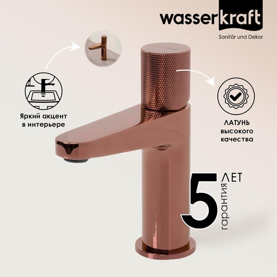 Смеситель для раковины WasserKRAFT Paar, золото розовое, 8803