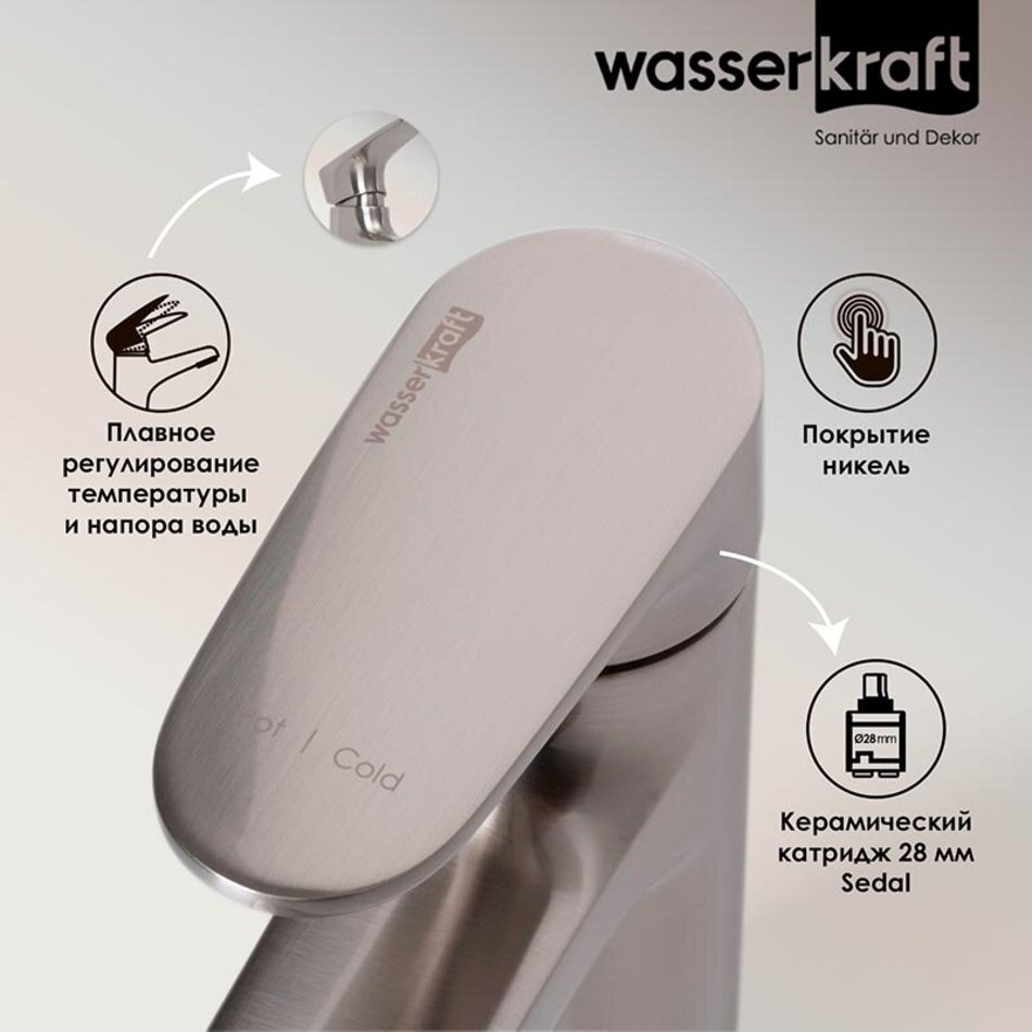 Смеситель для раковины WasserKRAFT Spree, никель, 1403