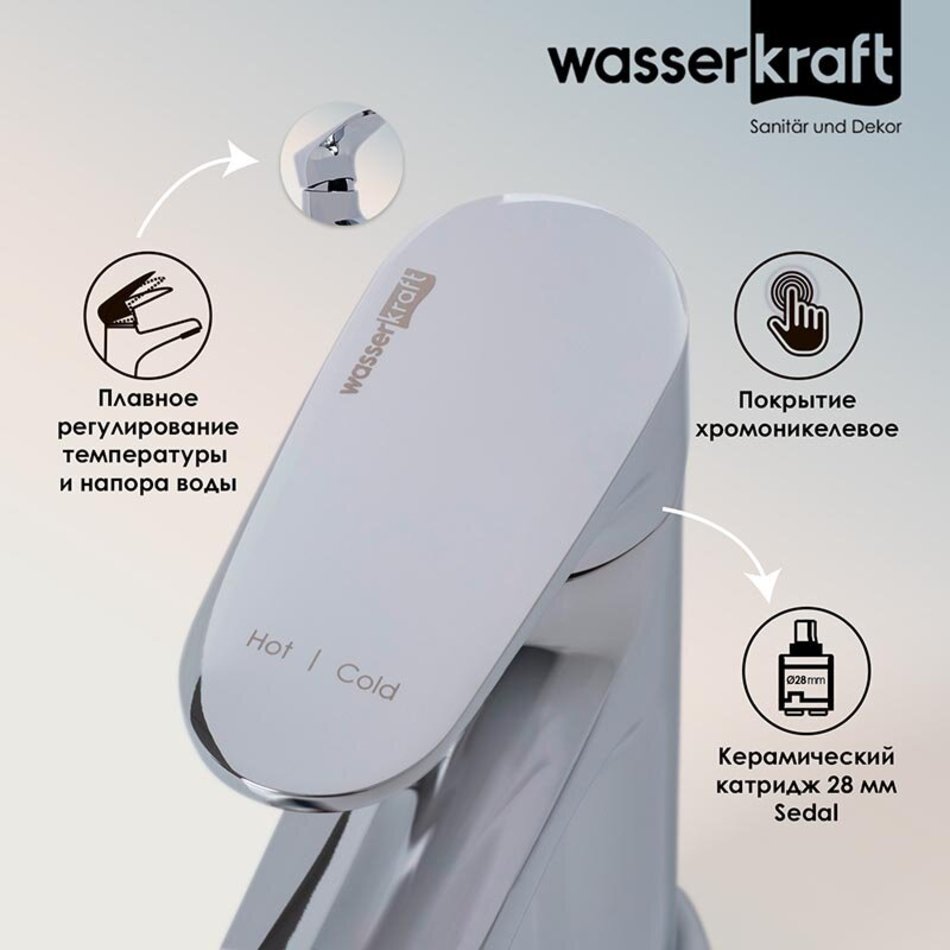 Смеситель для раковины WasserKRAFT Weida, хром, 3103