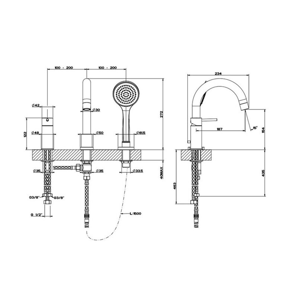Смеситель для ванны Gessi Via Tortona, 18637/149, на 3 выхода, цвет матовый никель