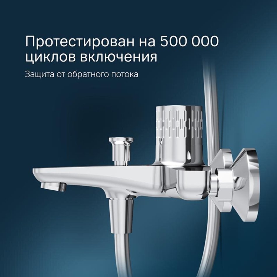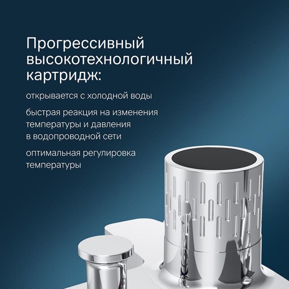 Прогрессивный высокотехнологичный картридж, открывающийся с холодной воды, обеспечивает оптимальную регулировку температуры, а также позволяет выдерживать любые перепады давления. При управлении ручкой увеличивается температура и поток воды. Встроенный высокоэффективный малошумный гидрогенератор обеспечивает энергией встроенное оборудование для работы индикатора температуры благодаря чему не требуются дополнительные источники энергии.