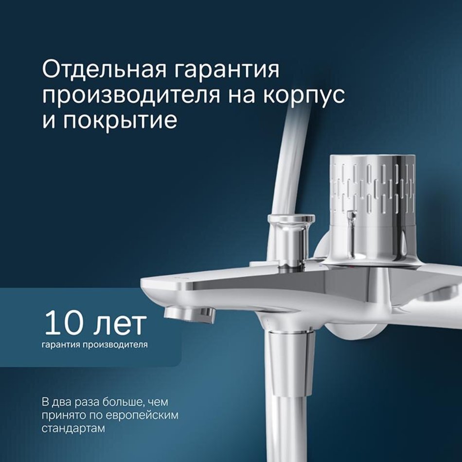 Непревзойденный смеситель для ванны и душа Gem выполнен в цвете хром. Отдельная гарантия на корпус и покрытие – 10 лет, в два раза больше чем принято по европейским стандартам.