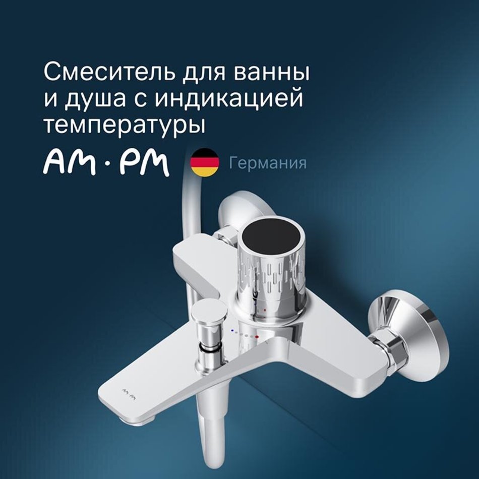 Смеситель для ванны и душа Am.Pm Gem F90A10400, с индикацией температуры, цвет хром
