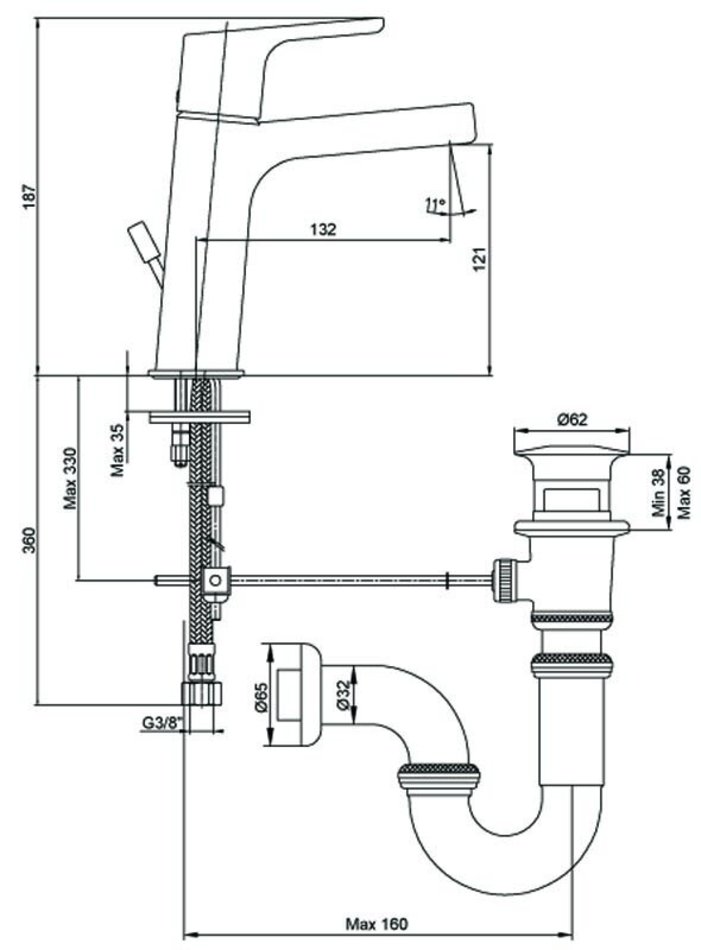 Смеситель E.C.A Luna 102108947EX для раковины с донным клапаном