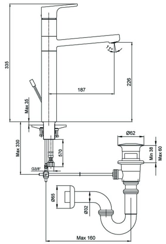 Смеситель E.C.A Luna 102108974EX для раковины с удлиненным корпусом и донным клапаном