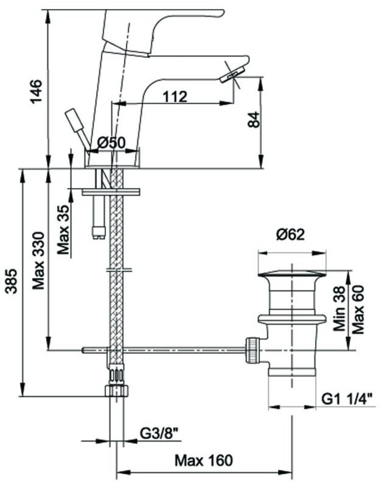 Смеситель E.C.A Niobe 102188056EX для раковины с донным клапаном