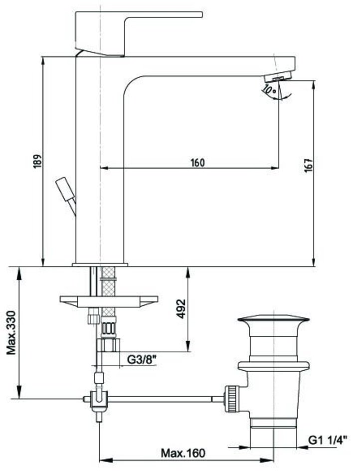 Смеситель E.C.A Nita 102188049EX для раковины с удлиненным корпусом и донным клапаном