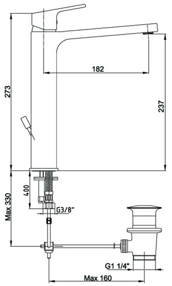 Смеситель E.C.A Tiera 102188014EX для раковины с удлиненным корпусом и донным клапаном