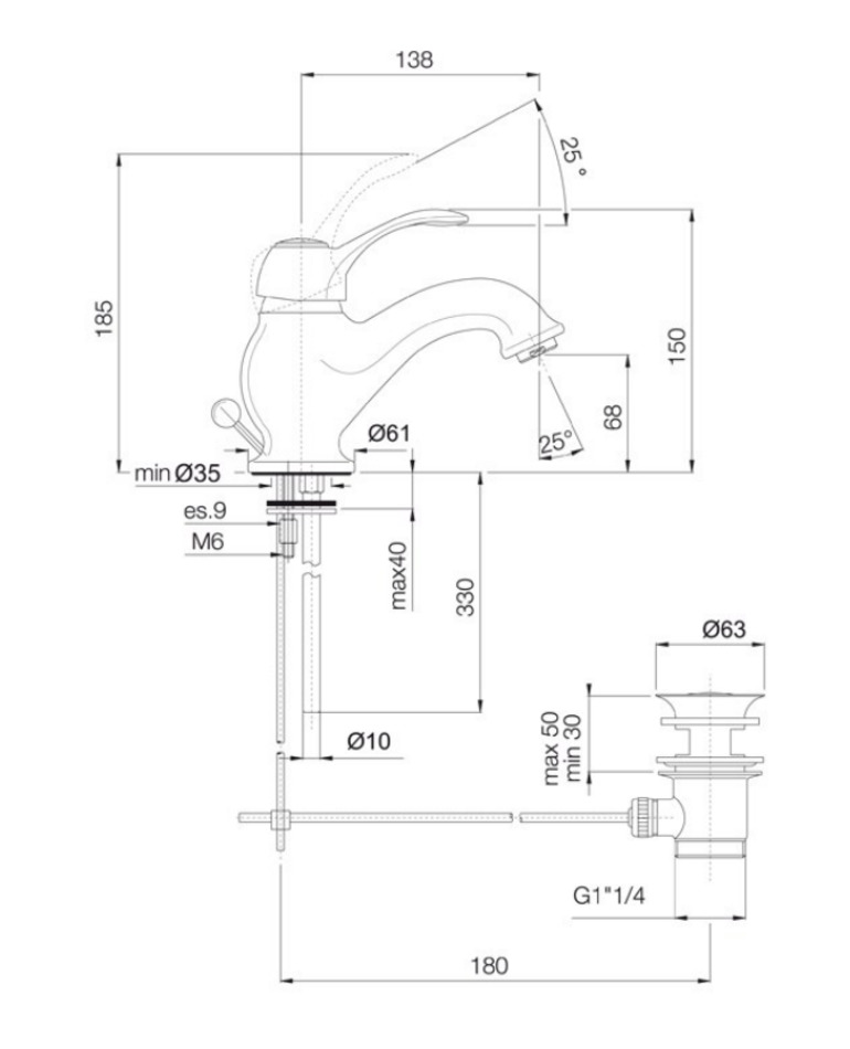- Донный клапан 1" 1/4 с переливом
