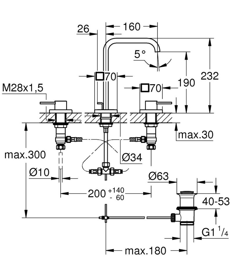 - смеситель для раковины на три отверстия, DN 15