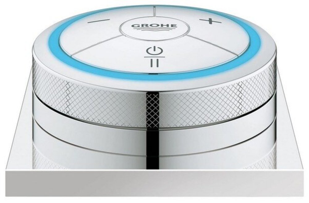 Квадратная плита основания приводит к круговой контроль - зеркально те же детали дизайна, которые дают Allure смесители в их современной интерпретации.Просто включите устройство, покрутите внешнее кольцо, чтобы увеличить поток воды и нажмите плюс или минус для увеличения или уменьшения температуры. Для дальнейшего повышения удобства использования, светодиодное кольцо дает визуальную обратную связь на температуру воды. А для ванной и душем, цифровой переключающий позволяет переключаться между водосбросов с помощью одного прикосновения.