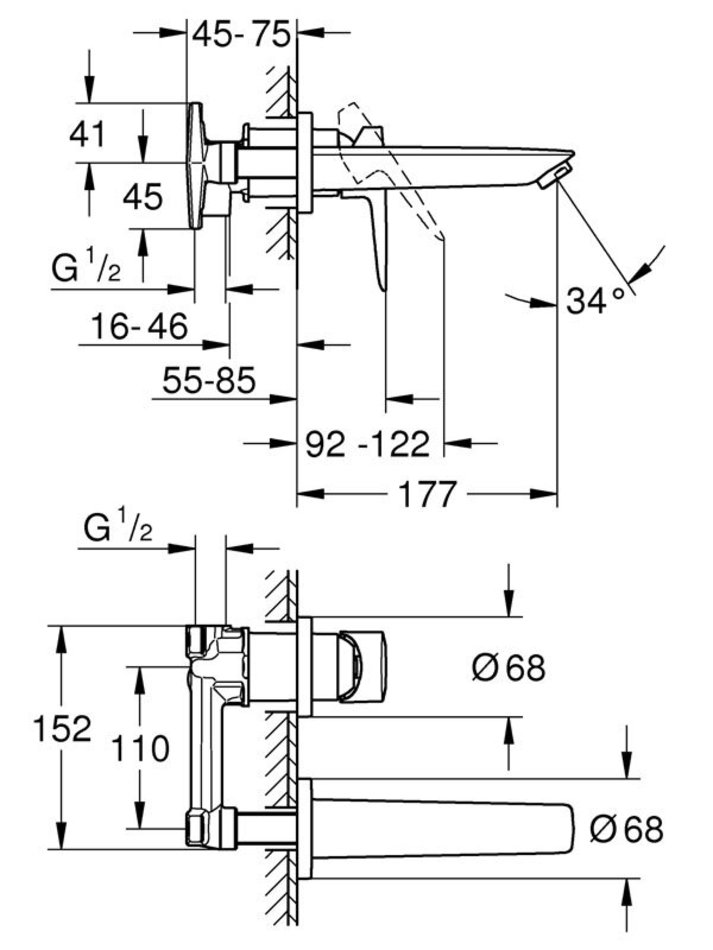 Смеситель Grohe BauEdge 29078000 для раковины скрытого монтажа на 2 отверстия, в комплекте с монтажной частью, хром, 20474001