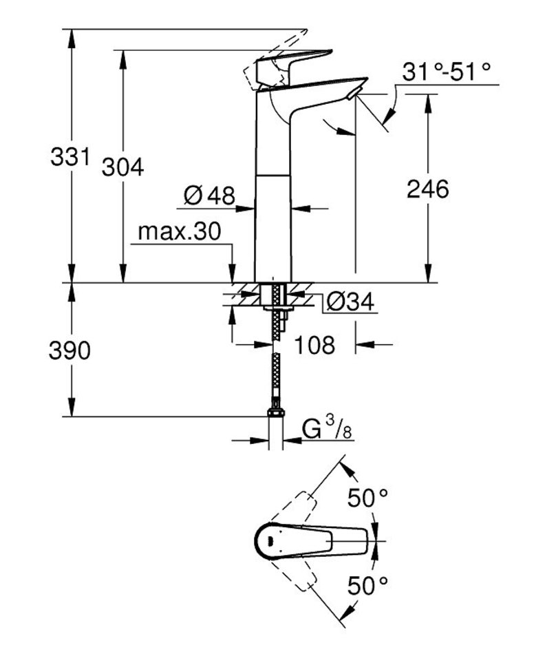 Смеситель Grohe BauEdge New, 23761001, для раковины, хром