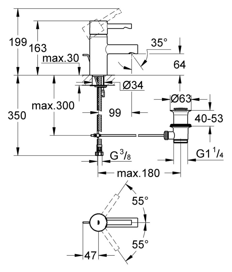 Смеситель Grohe Essence 33562000 для раковины, с донным клапаном, хром
