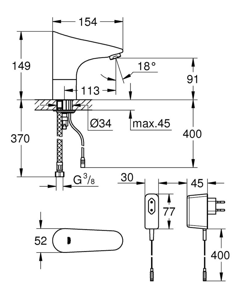 Смеситель Grohe Europlus E 36016001 для раковины, сенсорный