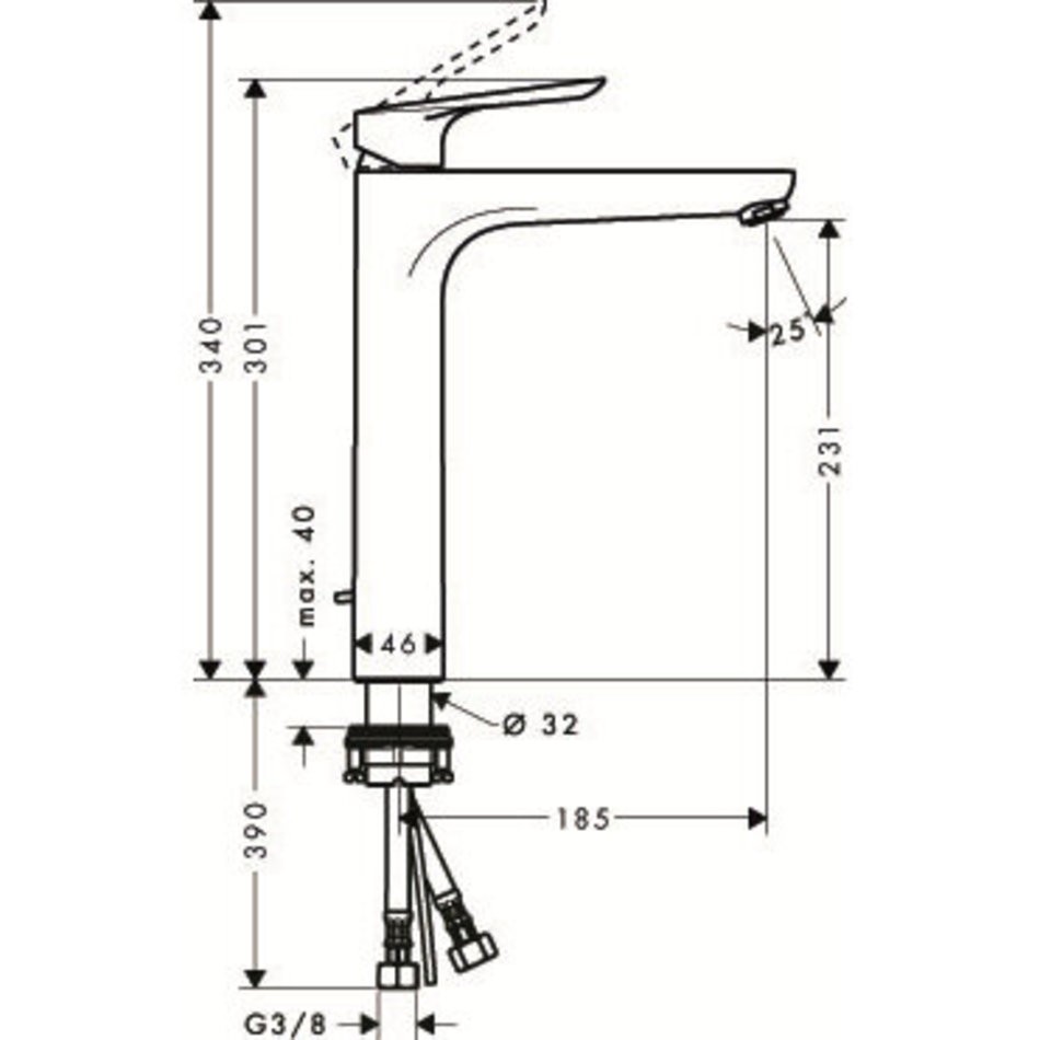 - вид соединения: соединительные шланги G ⅜