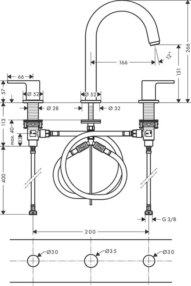 - состоит из: смеситель для раковины, на 3 отверстия, слив/перелив