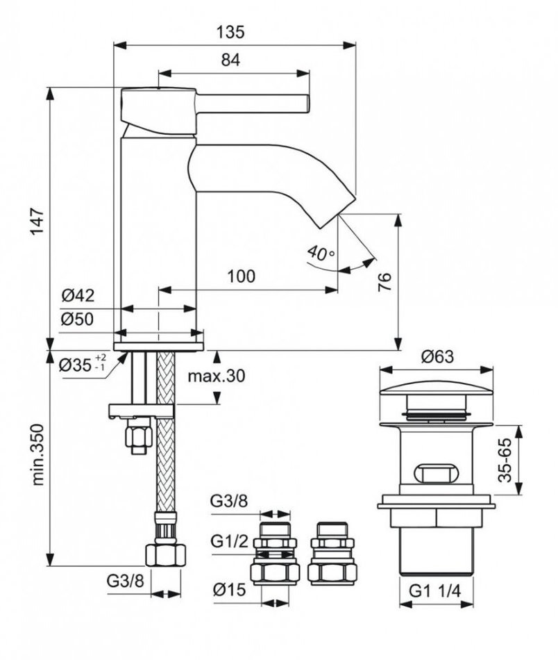 - Картридж: керамический, 35 мм с функцией HWTC (ограничение максимальной температуры горячей воды)