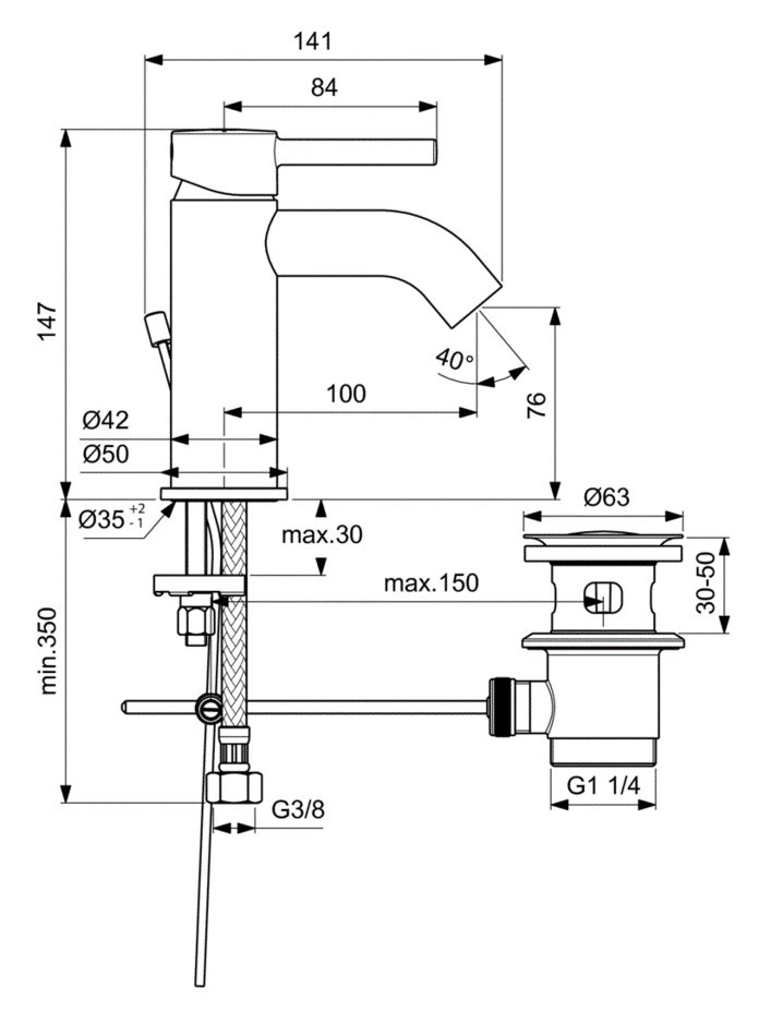 Смеситель Ideal Standard Ceraline для раковины, хром, BC203AA