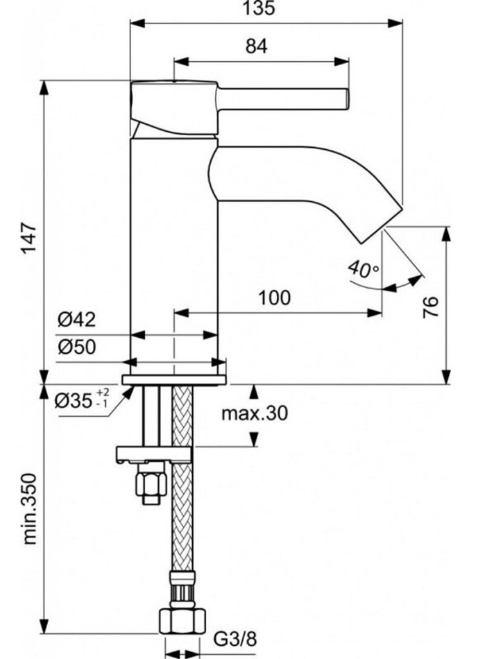 Смеситель Ideal Standard Ceraline для раковины, черный матовый, BC268XG