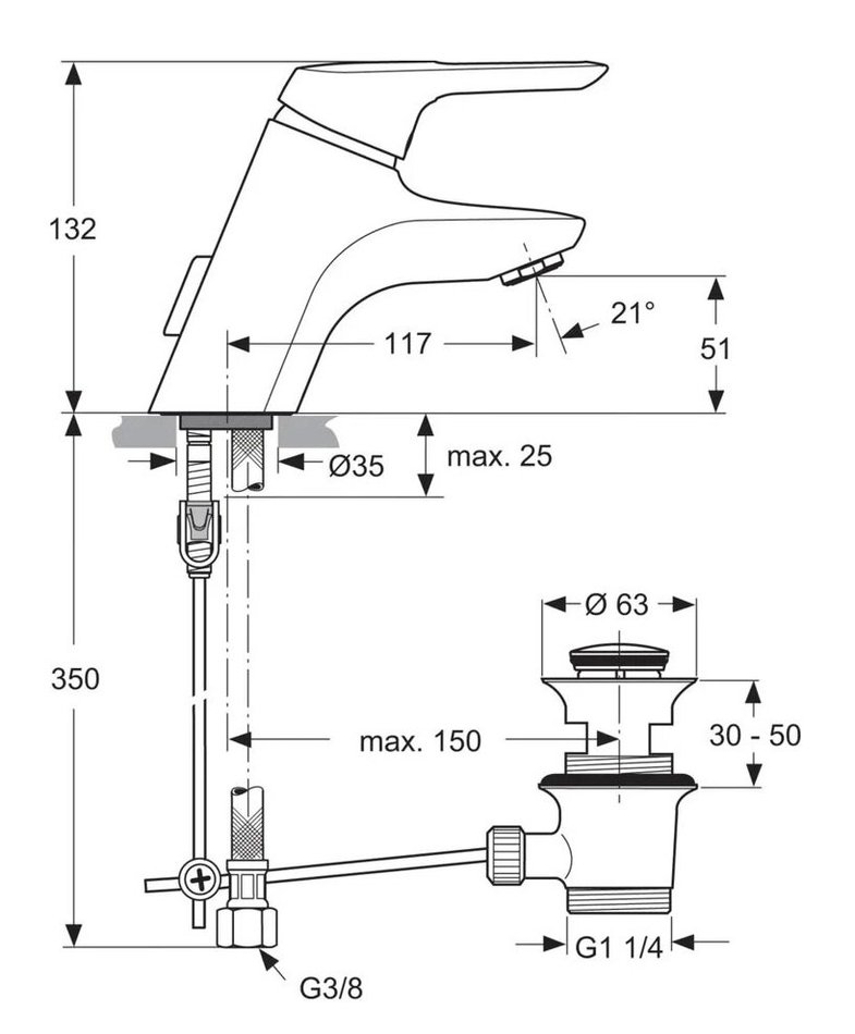 - Металлический донный клапан