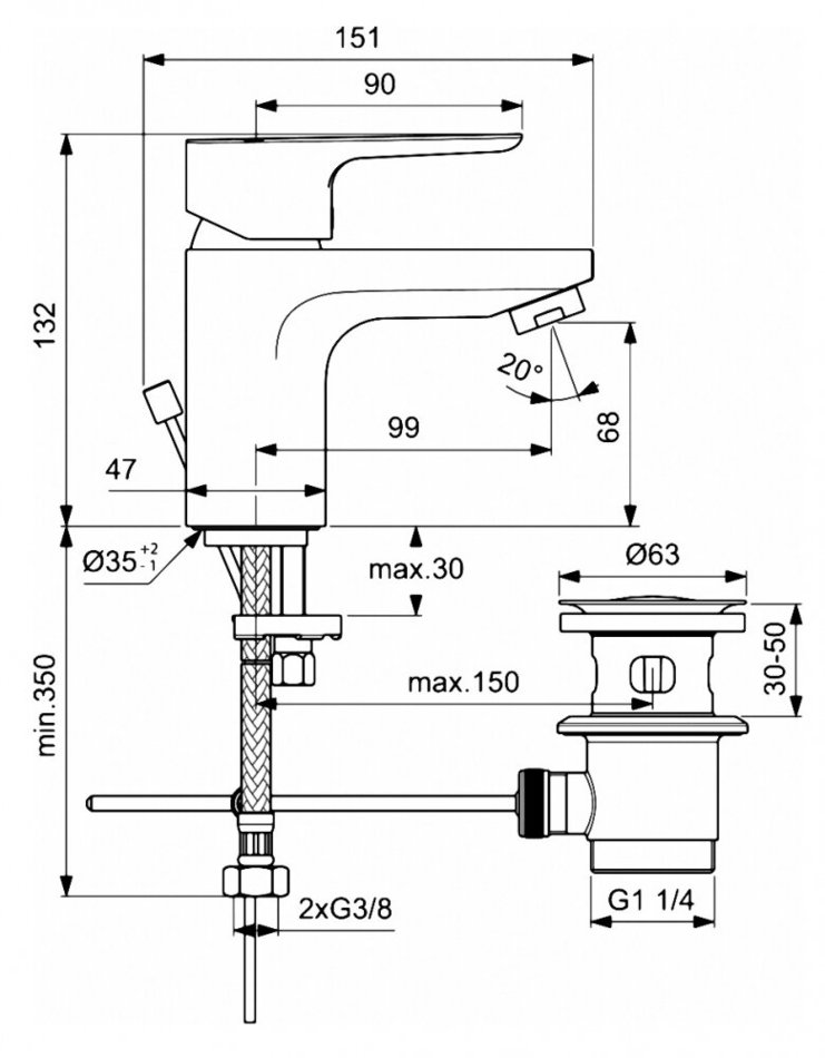 Смеситель Ideal Standard Ceraplan III Slim для раковины, хром, BC559AA