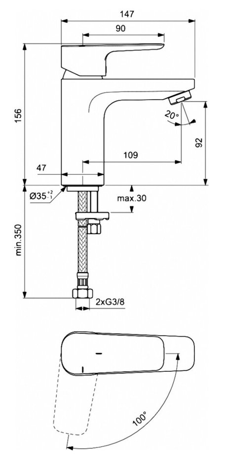 Смеситель Ideal Standard Ceraplan III Slim Grande для раковины, хром, BC569AA