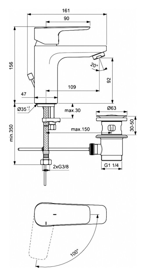 Смеситель Ideal Standard Ceraplan III Slim Grande для раковины, хром, BC570AA