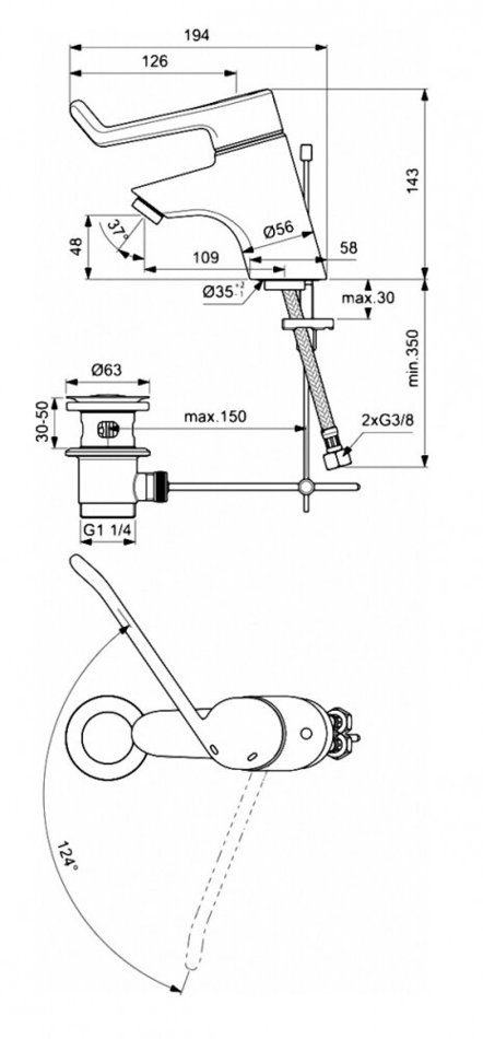 Смеситель Ideal Standard Ceraplus Sequential для раковины, с донным клапаном, хром, B8219AA