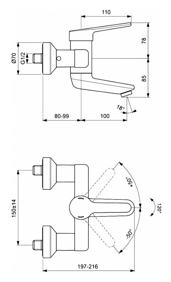 Смеситель Ideal Standard Ceraplus 2.0 настенный для раковины, хром, BC110AA